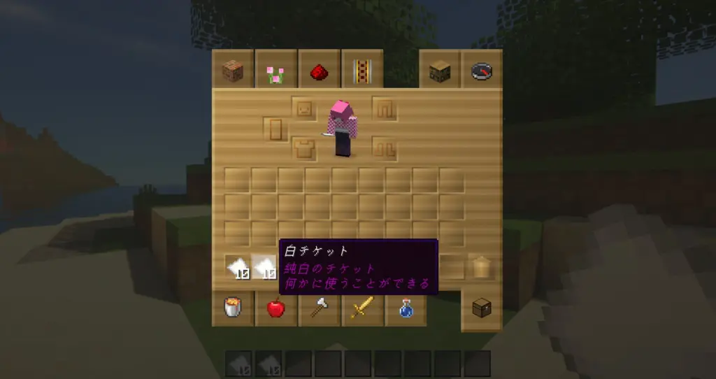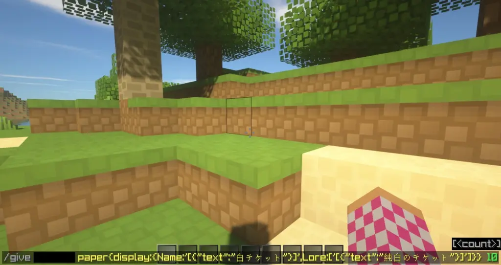 例えば、下記コマンドは、実行したプレイヤーに「白チケット」という名前の紙を10個与えます。